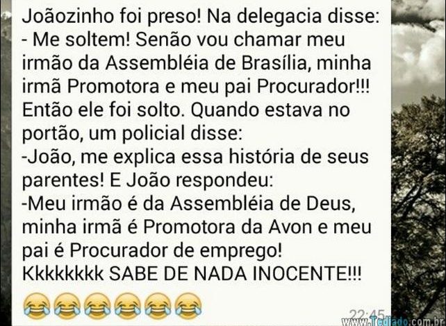 – Claro que não, Joãozinho!