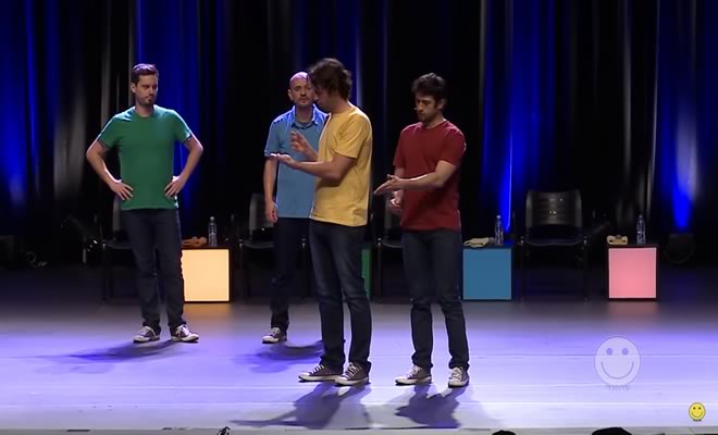 Regra: Antes de começar o espetáculo as pessoas da plateia colocam sugestões de cena numa caixa. As melhores são lidas na hora para os jogadores que terão que improvisar algo relacionado.
