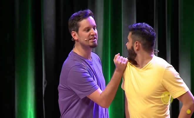 Regra: Os jogadores irão começar uma cena, e quando o mestre de cerimônias mandar, deverão avançar ou recuar a cena, representando todas as falas e movimentos como nas teclas de avançar e recuar do controle remoto.