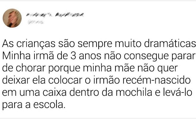 15 – “O silêncio de papai e mamãe é sempre um péssimo sinal. Momento em que ela percebeu que não dava para lavar a caneta permanente”