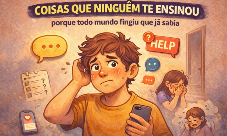 Este artigo não é sobre “habilidades básicas” genéricas. É sobre vergonhas silenciosas, situações sociais estranhas, emoções inesperadas e pequenos momentos em que a gente pensa: “era pra eu saber lidar com isso?”.