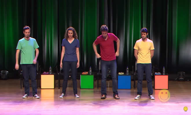 Regra: Antes de começar o espetáculo as pessoas da plateia colocam sugestões de cena numa caixa. As melhores são lidas na hora para os jogadores que terão que improvisar algo relacionado.
