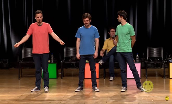 Regra: A plateia sugere três formas inusitadas de morte. Os atores devem iniciar uma cena que somente termina quando todos morrerem dessas causas incomuns.