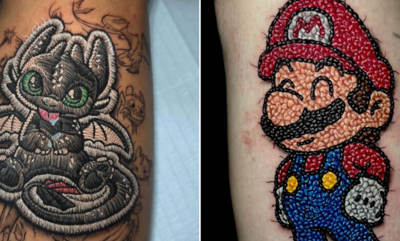 Tatuagens de bordado hiper-realistas criam ilusão impressionante de fios costurados na pele (30 fotos)