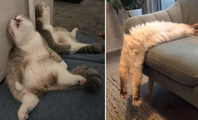 20 gatos desajeitados que adormeceram em maneiras loucas