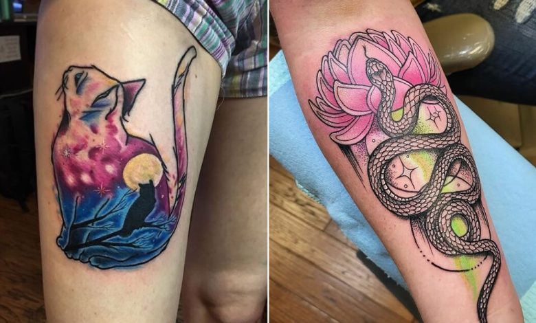 A principal diferença entre as técnicas de tatuagem tradicional e aquarela é que a tinta é aplicada de forma gradual e sutil. E embora possa haver exceções dependendo do assunto, usar tinta colorida para sua tatuagem em aquarela é fundamental. Um fato engraçado: enquanto algumas dessas tatuagens coloridas estão totalmente saturadas, outras empregam vários tons da mesma tonalidade para criar um efeito gradiente. Alguns tatuadores conseguem esse efeito diluindo suas tintas com água. Assim como com tintas aquarela!