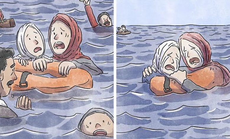 Ademar é um ilustrador, jornalista e roteirista brasileiro que domina a arte de contar histórias visuais. Hoje, queremos compartilhar suas 7 novas narrativas silenciosas que abordam temas preocupantes, como refugiados, sem-teto, destruição da natureza e o evento mais recente que chocou e emocionou os corações de muitas pessoas ao redor do mundo – a grande escala guerra na Ucrânia. Tudo isso é contado quase sem palavras porque uma imagem é uma linguagem universal compreendida por todos.