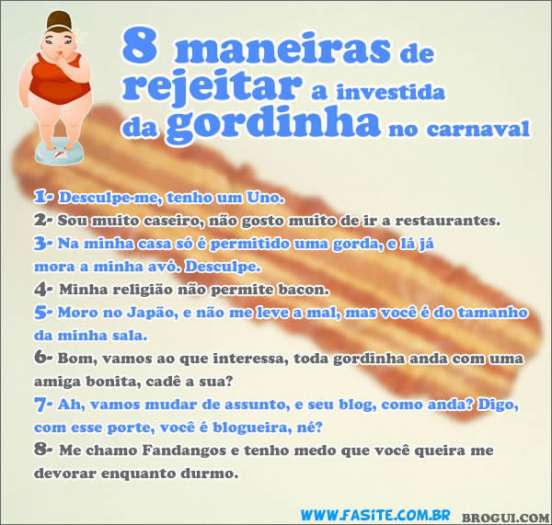 Eu realmente nunca vi nada tão ofensivo quanto esse negócio ai das gordinhas. Quem escreveu realmente não conhece todas as inúmeras qualidades que uma gordinha pode ter. Assim como as magrelas e as gostosas, as gordinhas também tem coração e que pode ser proporcional ao tamanho do corpo. Celulite e estria pode ser muito menos ofensivo do que falta de cérebro. Infelizmente o autor perdeu A GRANDE OPORTUNIDADE DA SUA VIDA DE FICAR QUIETO!!!!!!!!!!!!! afff