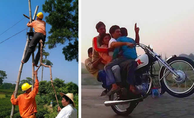 Tem gente que não liga para sua segurança, e acaba fazendo coisas de doido, duvida. Veja essas fotos e aprenda como não fazer as coisas.