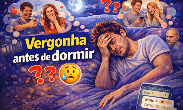 Sim, é extremamente comum. A vergonha antes de dormir acontece com muitas pessoas porque o cérebro usa o período de descanso para organizar memórias e refletir sobre experiências sociais.