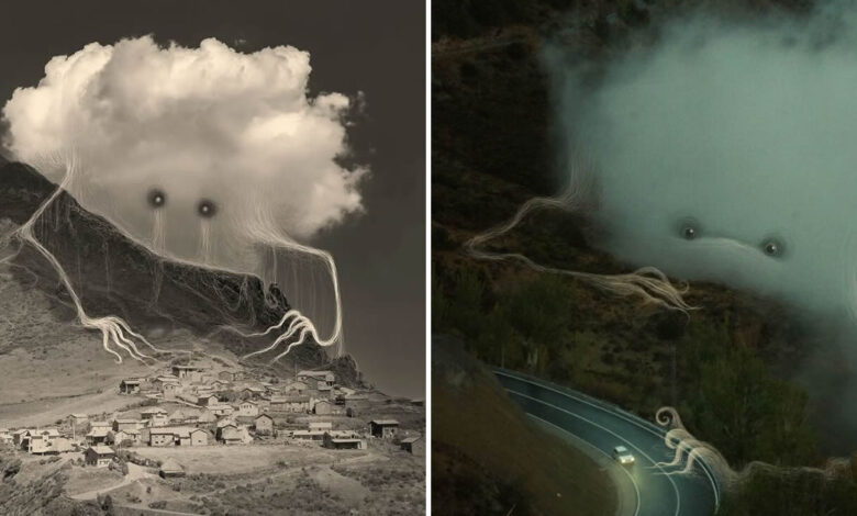 Uma de suas séries mais fascinantes, “Interventions”, transforma paisagens rurais em cenas etéreas. Com traços delicados e precisos, Vorja adiciona criaturas fantasmagóricas que parecem emergir da névoa e das nuvens, como se fossem parte daquele ambiente desde sempre. O resultado é uma fusão perfeita entre a fotografia e a ilustração, desafiando o olhar do espectador a enxergar além do óbvio.