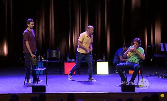 Regra: Com a participação do músico convidado, os jogadores devem realizar uma cena no estilo musical como aqueles da Broadway, cantando toda vez em que houver música.