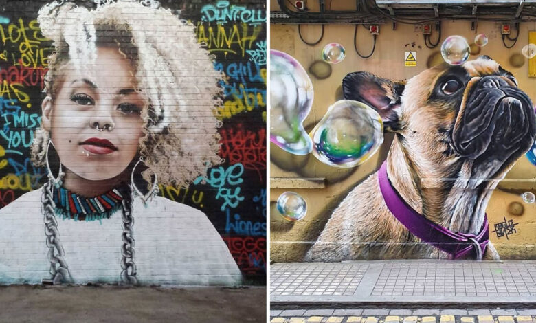 Bobby não pinta por fama. Seu objetivo é bem mais simples (e nobre): dar cor ao cinza e contar histórias silenciosas por cima do concreto. Seu estilo combina realismo com uma pitada de mágica que transforma muros comuns em experiências visuais marcantes.