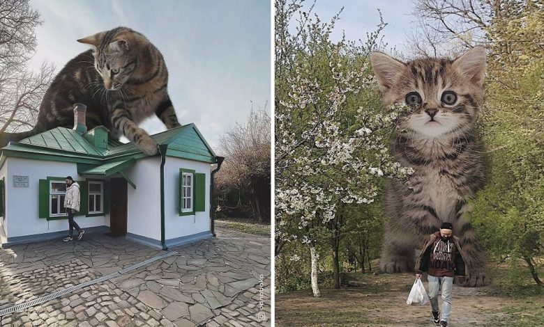 Há alguns anos, fomos agradavelmente surpreendidos pelo talento do artista Andrey Scherbak, que nos presenteou com suas adoráveis montagens de gatos superdimensionados em fotos. Desde então, o artista continua a explorar essa ideia única e encantadora, e é com grande entusiasmo que compartilhamos suas mais recentes criações.