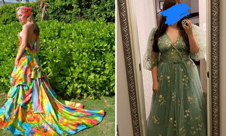15. Eu queria vender um vestido de baile dos anos 80 online, mas meu noivo está me implorando para fazer dele o nosso vestido de noiva.