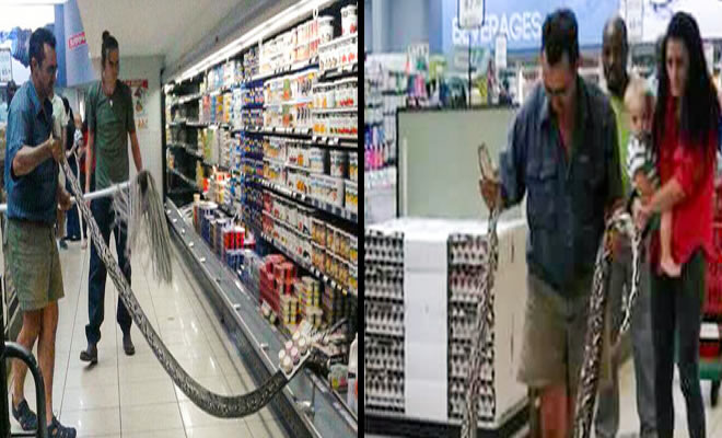 01 – Um homem encontrou uma cobra de 4 metros de comprimento em uma geladeira de supermercado em Johannesburgo, na África do Sul.