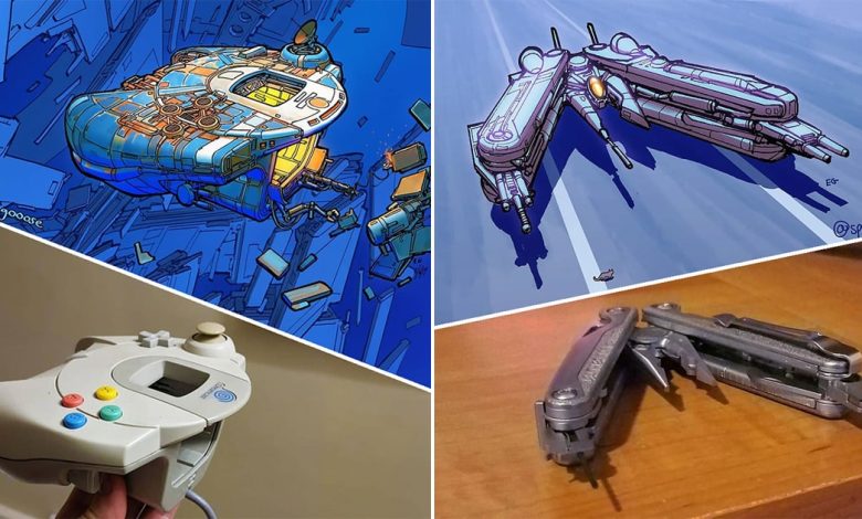 A ficção científica e as coisas espaciais não estão tão distantes das coisas cotidianas. Parece estranho? Eric Geusz, também conhecido como Spacegooose em suas mídias sociais e plataformas de arte, prova isso usando itens regulares como utensílios de cozinha ou material de escritório como inspiração para seus projetos de espaçonaves.