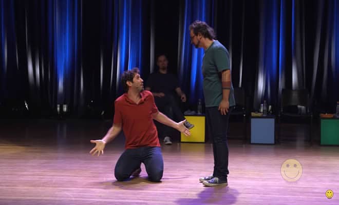 Regra: Os jogadores improvisam uma cena com tema sugerido pela plateia e, ao final, um deles é escolhido para memorizar tudo o que foi feito para dar continuidade e criar novas cenas.