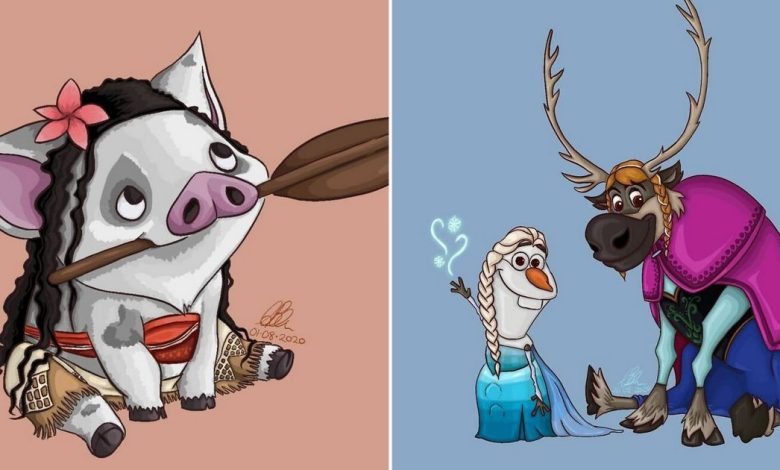 Artista desenha os ajudantes das princesas como protagonista (10 fotos)
