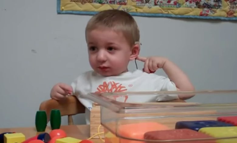 Garoto de 2 anos escuta sua mãe pela primeira vez