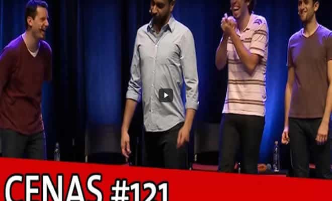 Improvável de hoje tem o hoje Cenas improváveis: “O que não fazer quando cumprimenta alguém na rua e vê que, na verdade, é um estranho”, “O que não fazer quando o celular cai no chão”, “Propagandas improváveis para festa”.