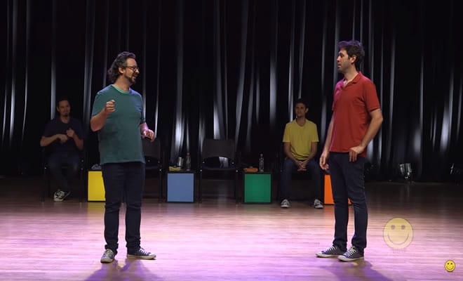 Regra: Antes de começar o espetáculo, a plateia coloca sugestões de frases numa caixa. Cada jogador recebe duas frases dessa caixa, que eles não sabem quais são, e no decorrer da improvisação eles tem que encaixá-las na cena.