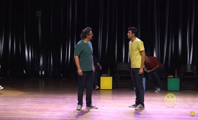 Regra: Os jogadores começam uma cena normalmente e quando o mestre de cerimônia toca a campainha, eles têm que falar todas as palavras iniciando com as letras selecionadas previamente.