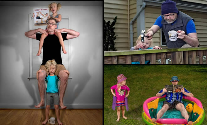O fotógrafo americano Dave Engledow começou seu projeto “melhor pai do mundo” para divertir a família e amigos.