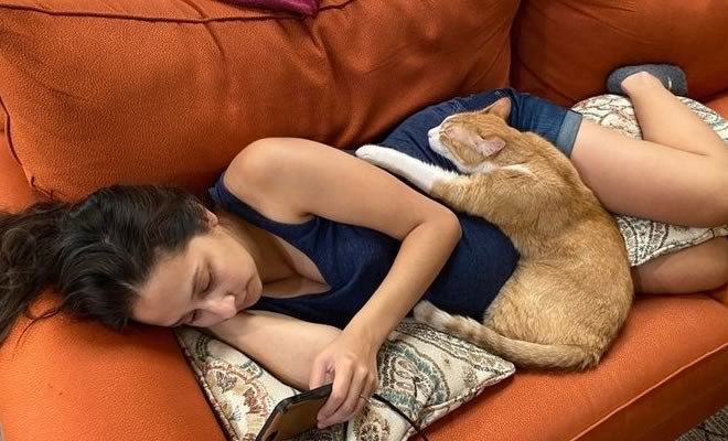 19 – Adotamos meu gato há quase dois anos e é a primeira vez que ela está abraçando a gente. Tão orgulhoso dela!