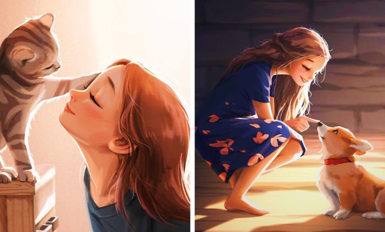 Relaxar sozinho é bom, mas relaxar com animais é ainda melhor. Não há nada melhor do que vibrar com seus amigos peludos; você obtém o melhor dos dois mundos. Você ainda pode sentir que tem companhia sem o barulho desnecessário que vem de andar com outras pessoas. Deixe-nos apresentar a você uma artista que retratou perfeitamente em sua mini série de ilustrações.
