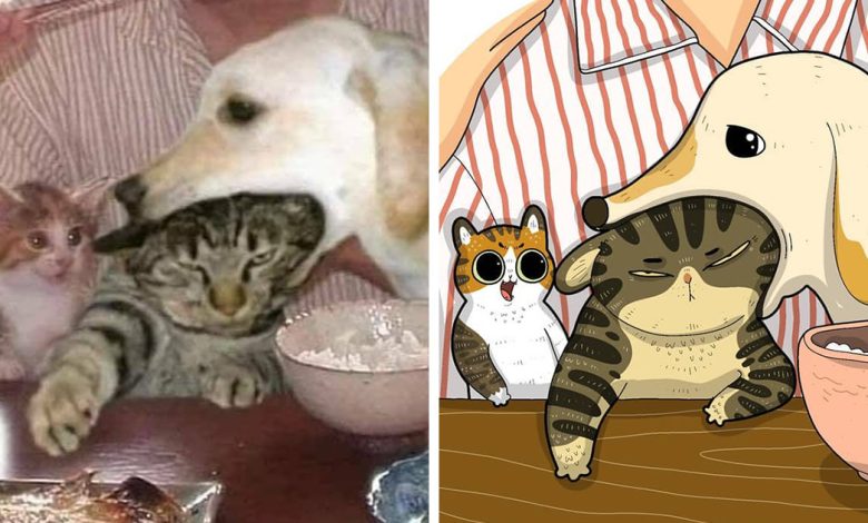 Artista transforma fotos engraçadas de gatos em ilustrações (35 fotos)