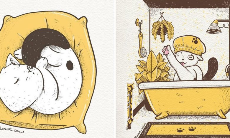 Ilustrações fofas com um gato introvertido que está apenas vivendo sua vida (29 fotos)