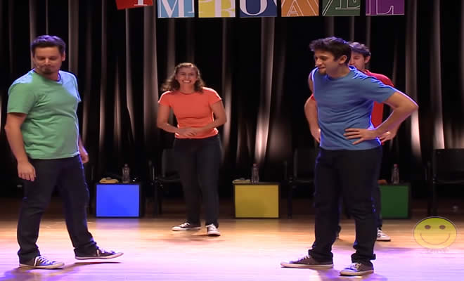Regra: Antes de começar o espetáculo as pessoas da plateia colocam sugestões de cena numa caixa. As melhores são lidas na hora para os jogadores que terão que improvisar algo relacionado.