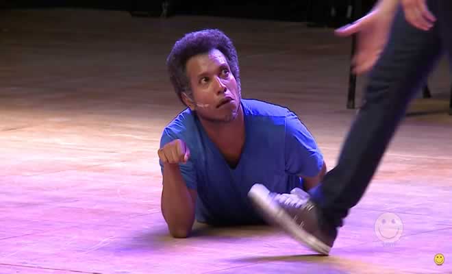 Regra: Os improvisadores começam uma cena. Durante ela o MC pode pedir “mais” ou “menos” e os improvisadores devem aumentar ou diminuir o que fizeram ou disseram.