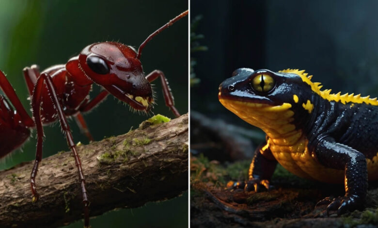 Essa salamandra europeia produz toxinas neurotóxicas pela pele, suficientes para matar pequenos predadores ou deixar cães em estado de choque. Antigos alquimistas acreditavam que ela nascia do fogo — pois frequentemente era vista fugindo de lenha em chamas.