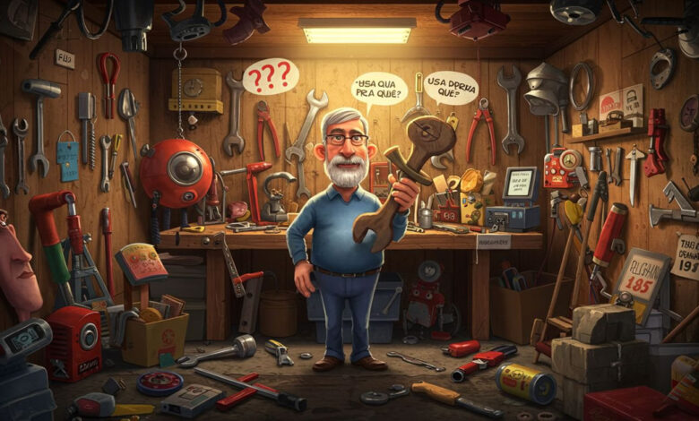 Se existe uma espécie de museu secreto que só os pais conhecem, ele provavelmente fica na garagem ou naquele quartinho dos fundos. Lá vivem ferramentas tão misteriosas que, mesmo com Google, tutorial no YouTube e ajuda do vizinho, ninguém sabe exatamente pra que servem. Mas todo pai tem. E defende como se fosse herança de família.