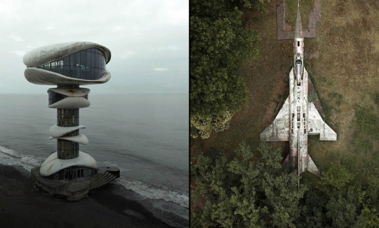 Entre os registros, destacam-se palácios estalinistas que permanecem congelados no tempo, casas de cultura abandonadas que um dia vibraram com música e movimento, mosaicos antigos que ainda desafiam o desgaste, e torres modernas agora vazias à beira do Mar Negro. Cada imagem é uma janela aberta para um passado que insiste em não ser apagado.