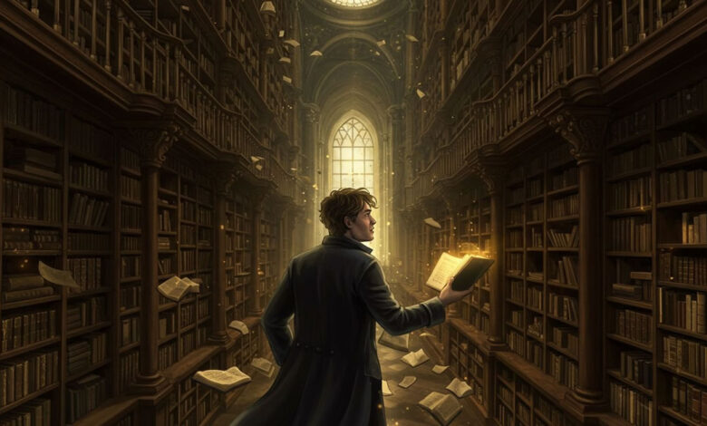 Gabriel passou a noite inteira na biblioteca. Não ousava sair, como se temesse que, ao cruzar a porta, tudo evaporasse — livros, estantes, até o cheiro de papel antigo. Sentou-se em uma mesa de carvalho no centro do salão, iluminado por um único lustre que parecia ter despertado só para ele.
