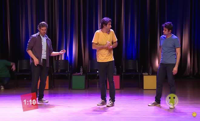 Regra: Os jogadores devem realizar uma cena dentro do tempo estipulado, utilizando todos os itens sugeridos pela plateia.