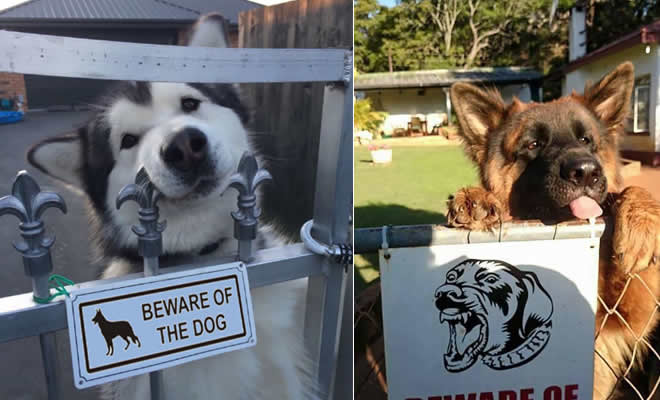 22 cachorros perigosos por trás da placa “Cuidado com o cão”