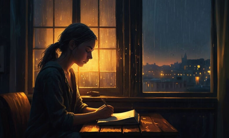 Naquela noite, sozinha em seu quarto iluminado apenas pela luz amarelada da luminária, Clara folheava um caderno antigo. Ao fundo, o barulho abafado da cidade se misturava ao som da chuva fina. Encontrou uma página em branco e, num impulso, escreveu: