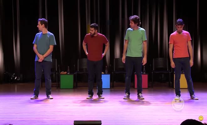 Temas (sugestões propostas pela plateia): “O que não fazer quando pedir pizza de madrugada“, “Motivos improváveis para correr da sua mãe”, “O pior spoiler do mundo”, “Cenas não vistas de Tartarugas Ninjas”.