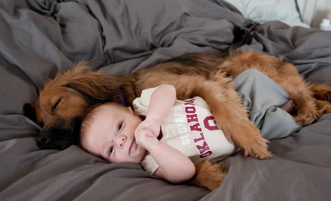10 – Apena meu cachorro dando um abraço no bebê.