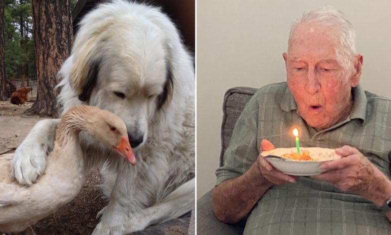 1. Um ganso e um cachorro são melhores amigos.
