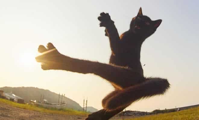 Acontece que os gatos sabem muito sobre rtes marciais. A fotógrafa japonesa Hisakata Hiroyuki decidiu dedicar uma boa parte do tempo para filmar gatos durante suas práticas de combate totalmente graves, e o resultado é perfeito.