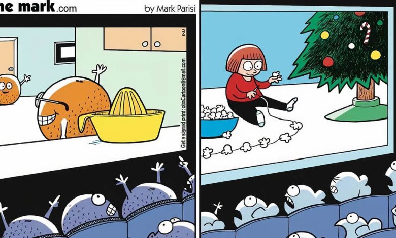 Para este artigo, selecionamos as obras mais engraçadas que retratam filmes de terror em um universo paralelo de Mark Parisi. Na série, o artista revela habilmente como seria um filme de terror para animais e coisas. Então, role para baixo para algum entretenimento de Halloween!