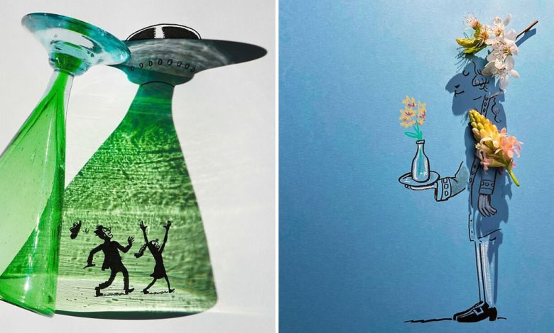 As ilustrações únicas do artista belga Vincent Bal têm encantado o mundo com sua criatividade e originalidade. Ele transforma objetos cotidianos em arte ao incorporar suas sombras nos desenhos, criando um universo lúdico e cheio de humor. Essa técnica, conhecida como “Shadowology”, é a essência de sua obra e tem o poder de transformar simples sombras em personagens e cenários divertidos, revelando a magia que pode surgir do trivial.