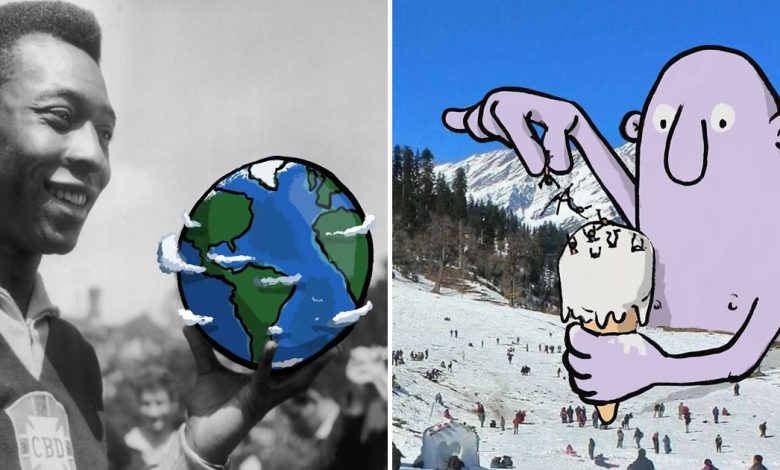 Lucas Levitan é um talentoso artista brasileiro que abraça uma variedade de formas de expressão artística, incluindo ilustração, cinema, fotografia e direção de arte. No entanto, desta vez, queremos apresentar o seu projeto divertido e único chamado ‘Invasão de Fotos’. Nesse projeto, Lucas assume a ousada missão de literalmente invadir fotos de outras pessoas com suas ilustrações criativas. O resultado é uma fusão de realidade e imaginação, onde personagens de desenhos animados e figuras caricatas se encontram com situações do cotidiano de uma maneira hilária e inesperada.