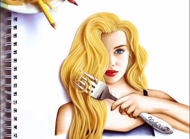 O artista de Nova Zelândia Kristina Webb não se limita apenas no papel. Flores, saladas, espaguete e até mesmo tornar-se parte de suas ilustrações.