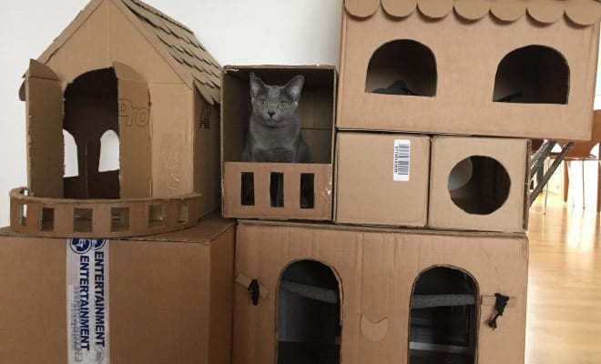 O que acontece quando você tem muito tempo livre e precisa se distrair dos eventos incontroláveis da vida? Você libera sua criatividade! Como esses donos de gatos que criaram castelos de papelão bem criativos para seus amigos peludos. Role para baixo para ver e tenta construir um você também!